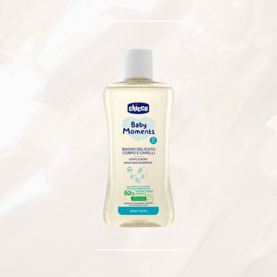 غسول الجسم اللطيف من شيكو ضمن مجموعة Natural Sensation مُصمم لتنظيف وترطيب بشرة الطفل الحساسة بلطف منذ أول استحمام. مستوحى من vernix caseosa (الطبقة الواقية الطبيعية على بشرة الطفل عند الولادة)، ويحتوي على الألوة فيرا والبابونج لتهدئة البشرة وتغذيتها دون تهييج.
